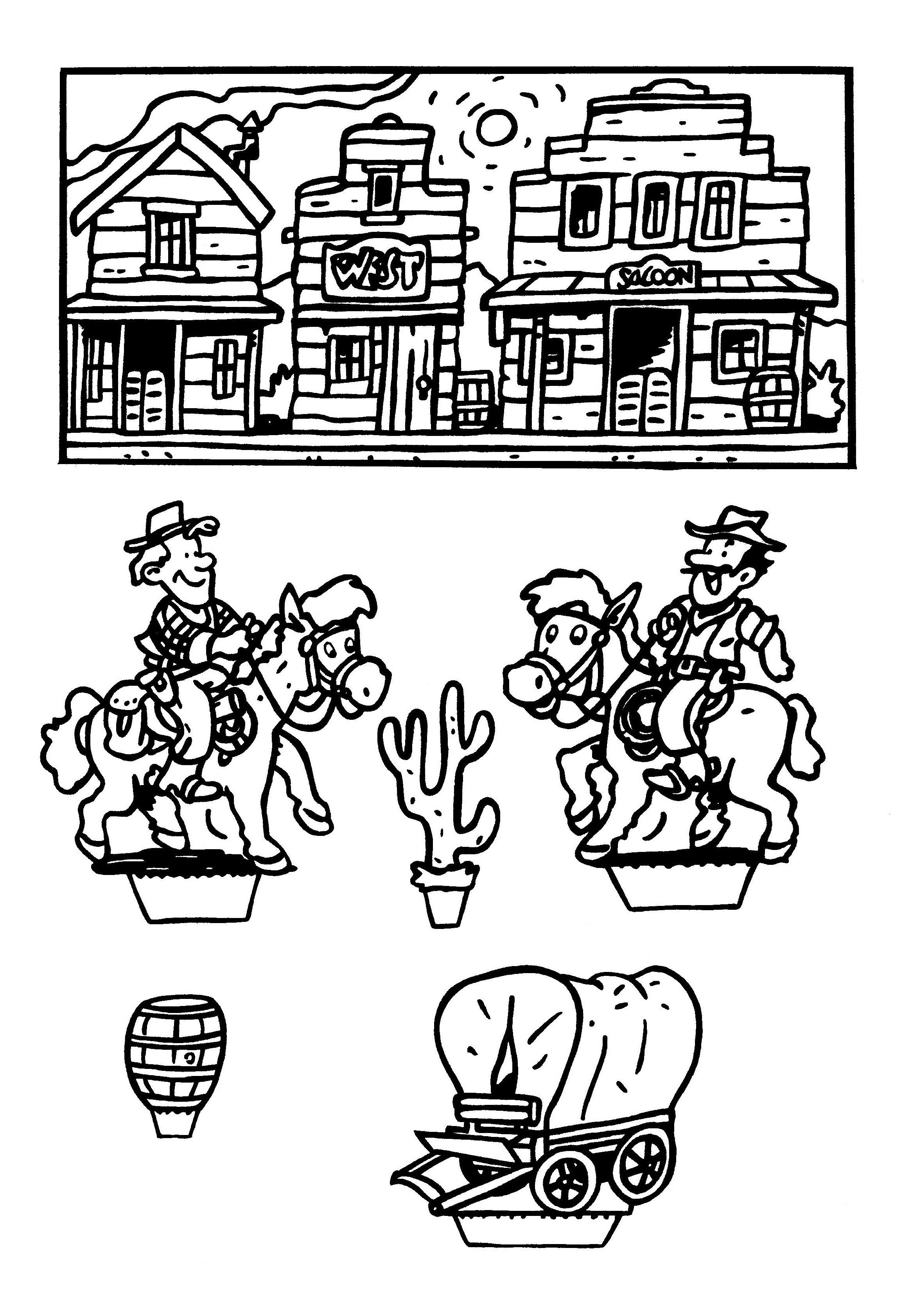 Hieronder vind je kleurplaten met het thema 'Wilde Westen'. Klik op de link naast de afbeeldingen om de kleurplaten te downloaden. Je kunt de kleurplaat dan afdrukken met de printer vanaf je computer. Veel kleurplezier!