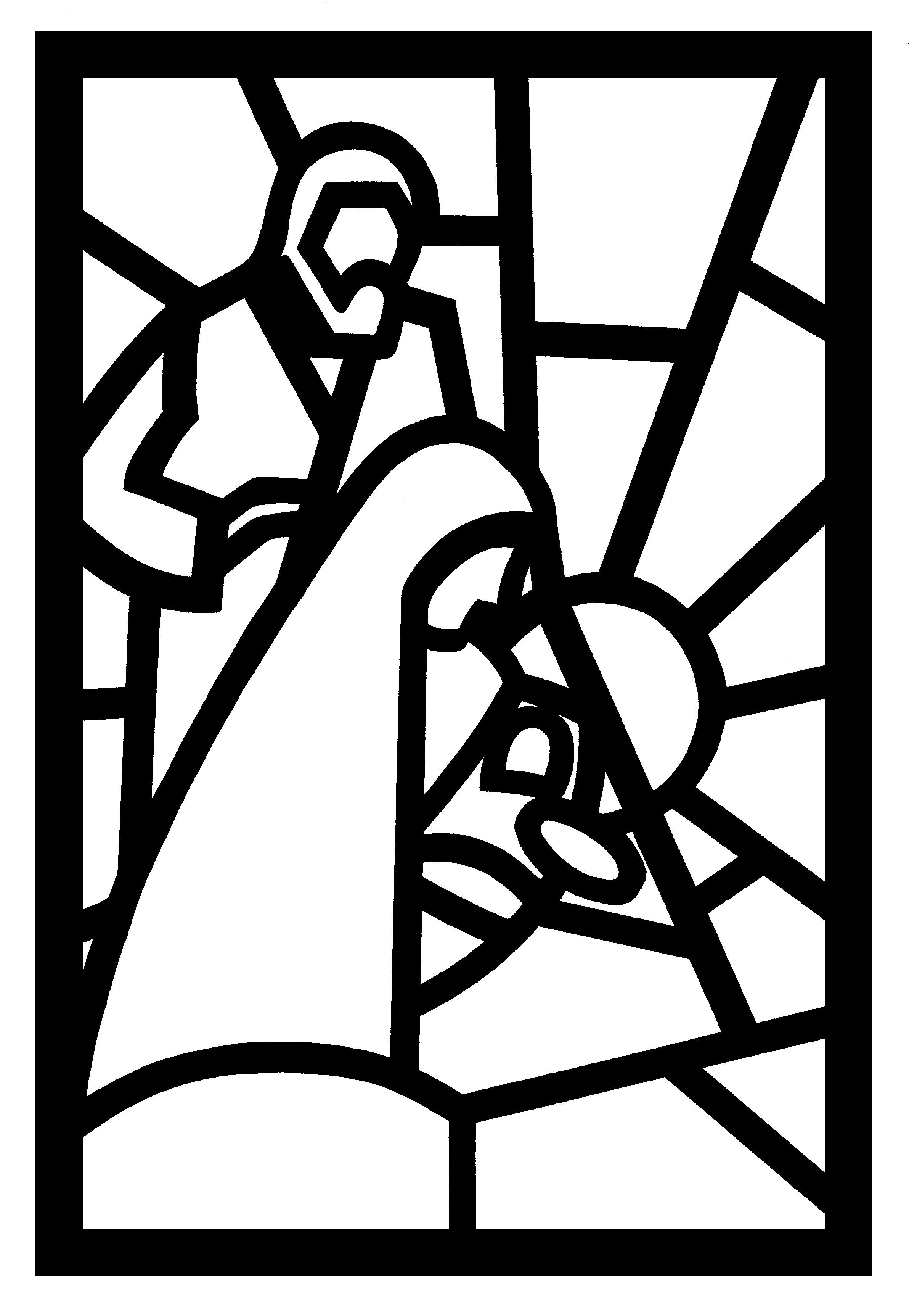STAP 2: Knip het glas-in-lood raam uit en knip of snijd de uitsparingen weg, zodat het kale, zwarte raamwerk overblijft. Let op: leg een zwart vel onder het vel waar je op hebt getekend. Op deze manier heb je meteen twee raamwerken!
